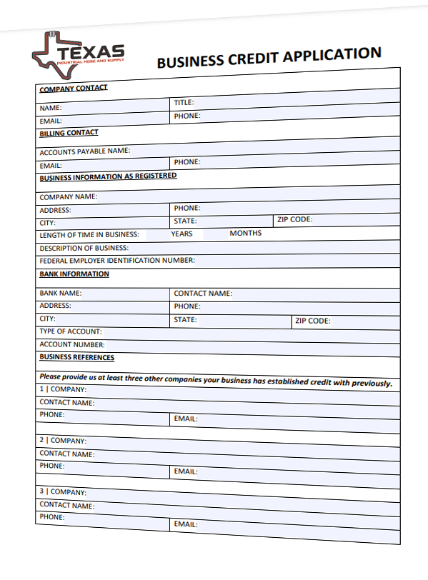 We are happy to learn you would like to be set up as a new customer! Please print out the credit application below and either fax it to us, email it, or quickly and can begin service right away!